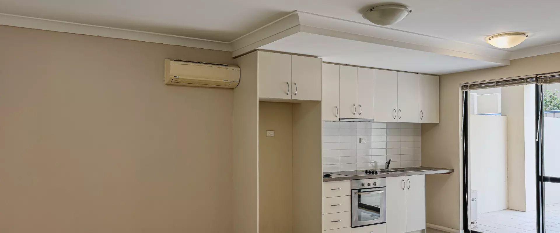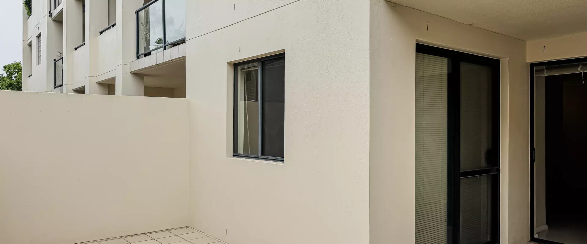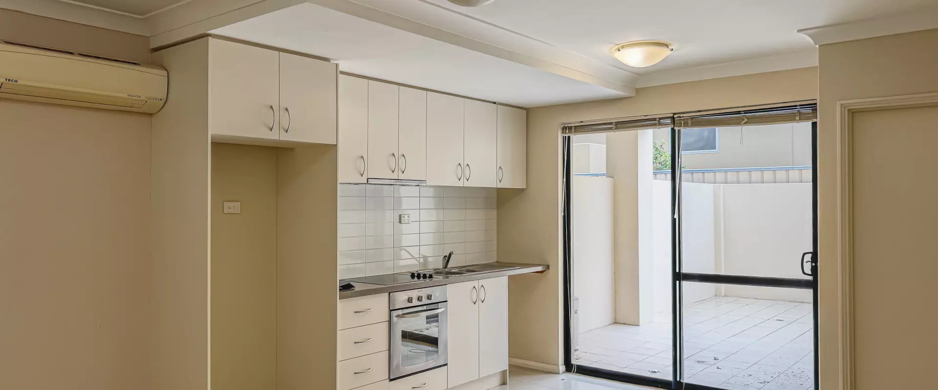 * Open plan living and meals space with direct balcony access and tile flooring