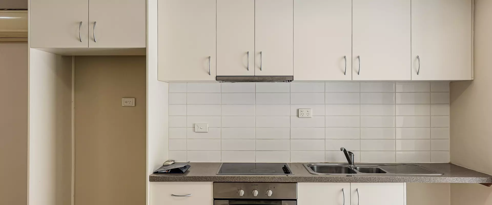 * Sleek kitchen with ample overhead cupboard space